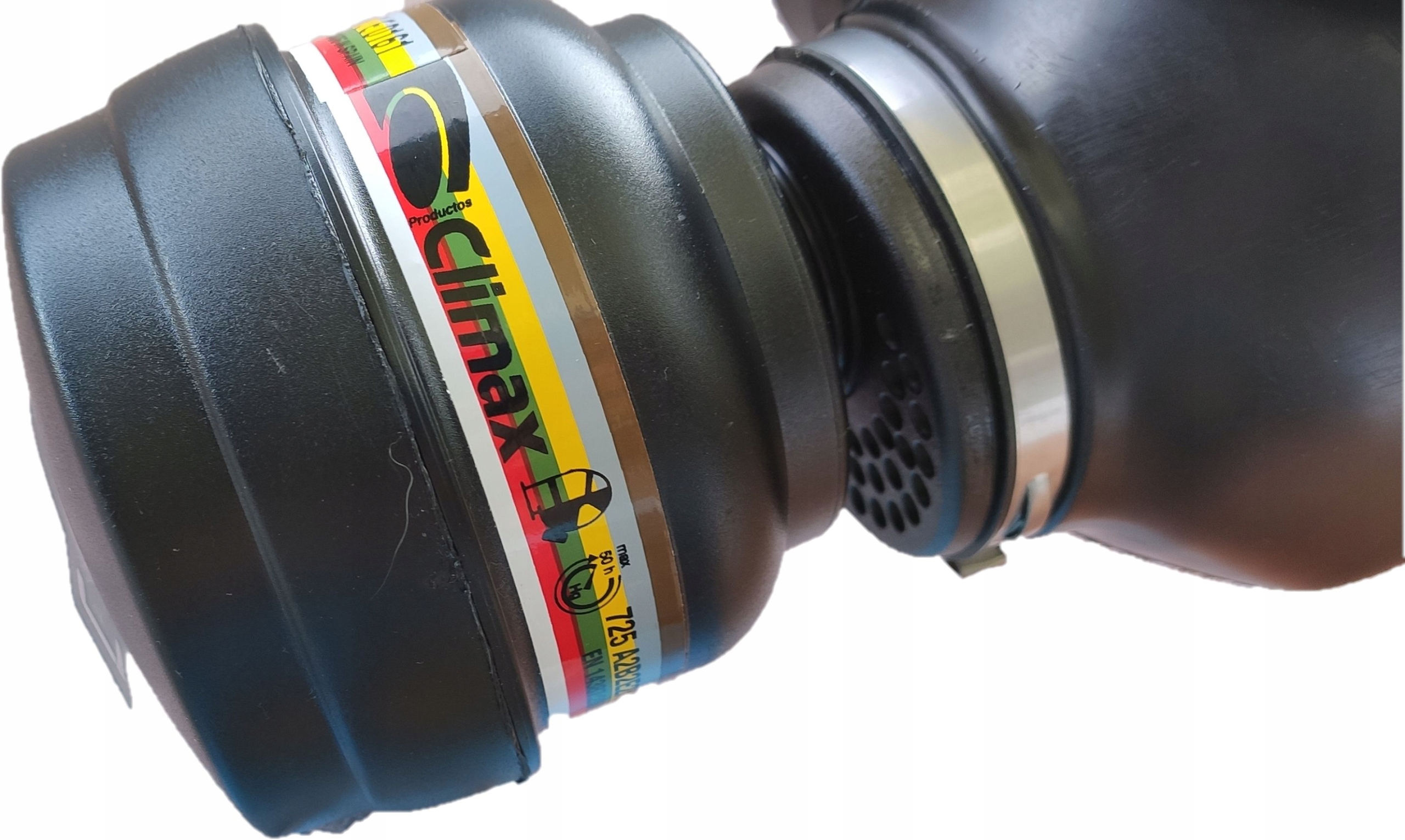 Pochłaniacz Climax typu ABEK2HgP3 chroni układ oddechowy przed oparami organicznymi i rozpuszczalnikami o punkcie wrzenia wyższym niż 65*C, gazami i parami nieorganicznymi (chlor, siarkowodór, cyjanowodór), dwutlenkiem siarki oraz amoniakiem i organicznymi pochodnymi amoniaku, oparami rtęci, a także cząstkami (pyłami i aerozolami).